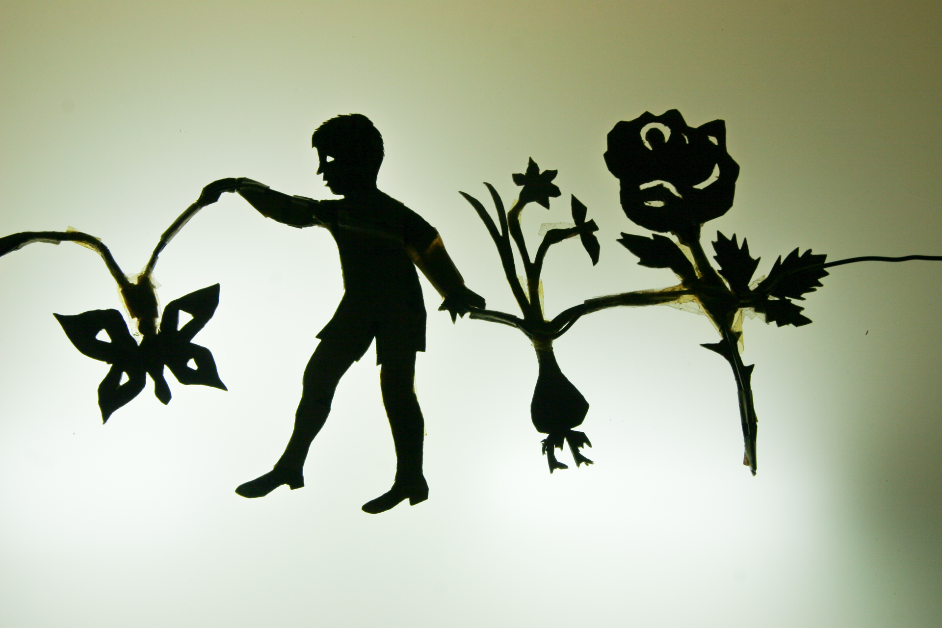 קשה לתאר את התחושה שעברה בי כשפתחנו ביחד את המעטפות והסתכלנו על הדמויות. הצלליות היו תמיד נחלתה הפרטית של סבתא ואסור היה להתקרב, בטח שלא לגעת. שינוי סדרי עולם. הלב דפק כשפתחתי עוד מעטפה ועוד מעטפה, ונגעתי בדמויות המוכרות כל-כך. חתיכות קרטון פשוטות, עם חוטי ברזל שמודבקים אליהן בעזרת צלוטייפ; שפע של צלוטייפ לתיקונים של קלקולים קטנים; שמות הדמויות בכתב היד של סבתא – על הדמויות עצמן; ניירות מודפסים במכונת הכתיבה של סבא, עם הטקסטים של ההצגות. ב'ילד החרוץ' היו גם תווים מצולמים מתוך ספר. הכל מסודר ומאורגן, לפי סדר ההצגה, ממוספר ומדוייק.
